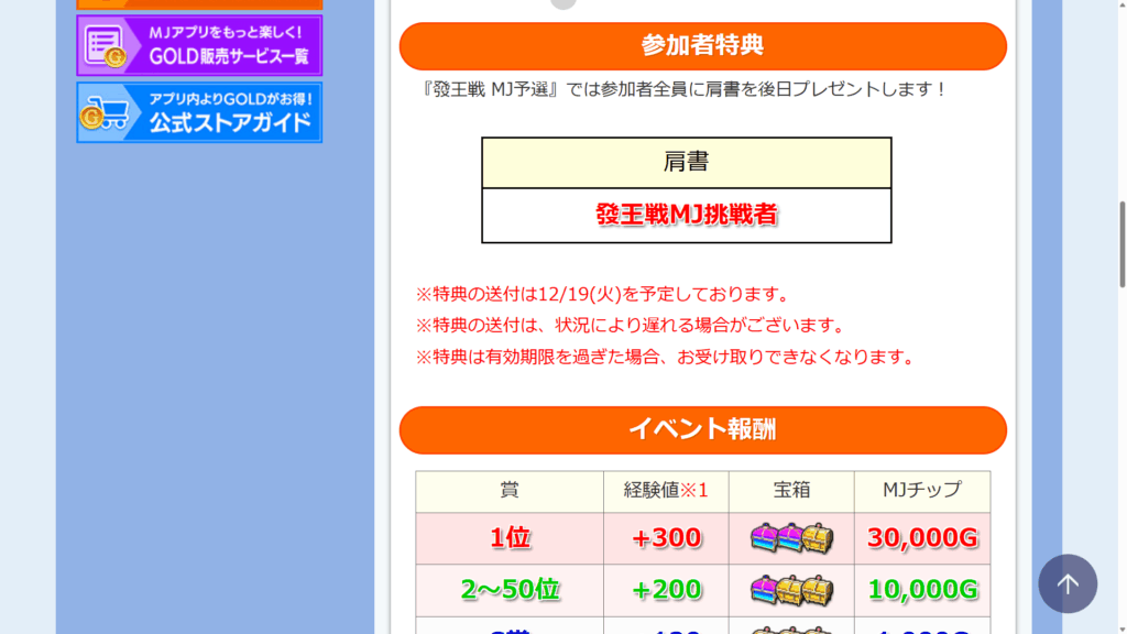 当時のMJは肩書き(下の画像で言うと、キャラクターの上部に表示されている「大海物語4 CUP 東風S賞」と書いてある部分)を手に入れるのはイベントで入賞するしか方法がなかった。具体的にはカップ戦やギャンブル卓でのS賞以上入賞、もしくはトーナメント優勝のいずれかである。